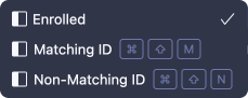 - Matching ID - simulates Touch ID or Face ID successfully recognizing the user,