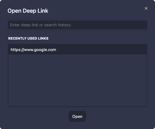 - Open Deep Link - open deep links and website URLs on the device. Website URLs open in the default device browser.