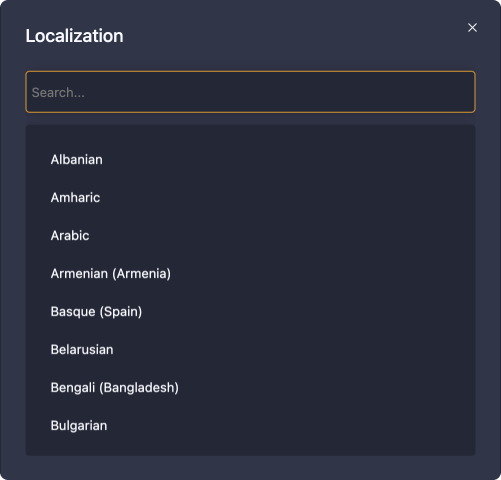 - Localization - set the device localization. Changing the localization setting reboots the device. This option isn't available on Android.