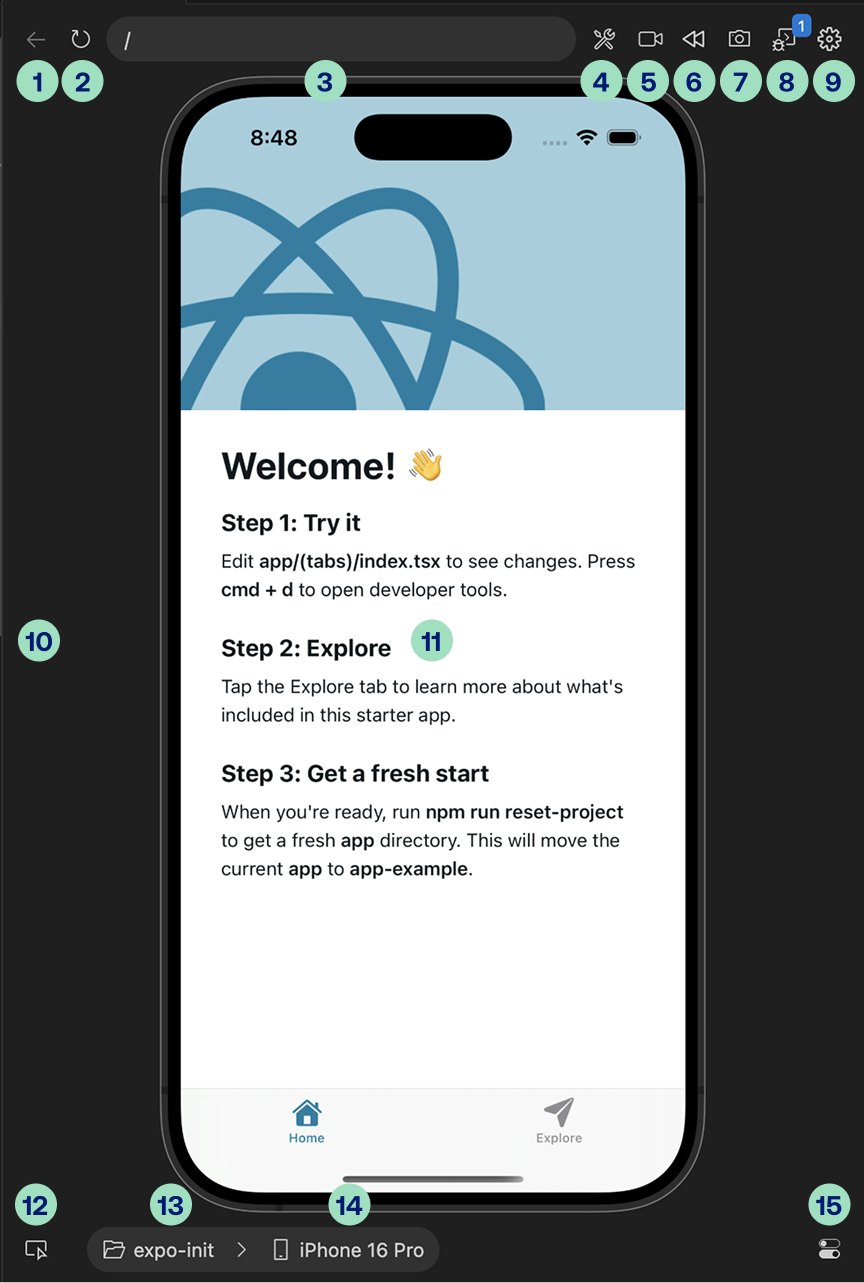 This page documents the UI elements of the Radon panel, which is the main way of interacting with your app, and most of the other features of Radon IDE in Panel Mode (this is the default mode for Radon).